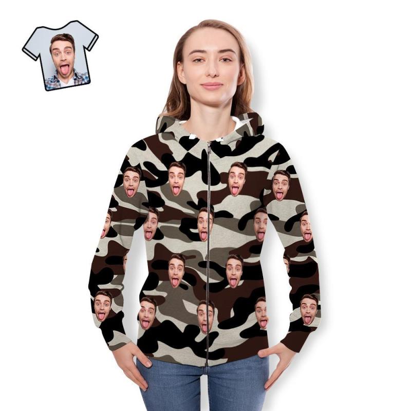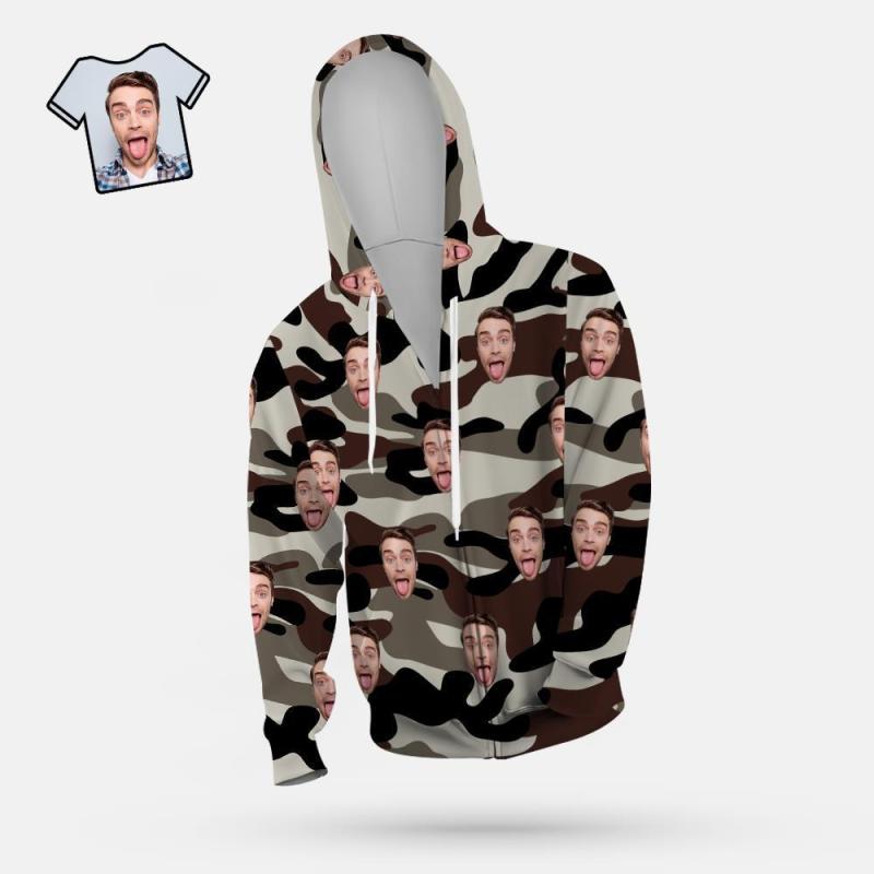 Custom Face Unisex Hoodie Casual Imprimé Dim Grey Camouflage