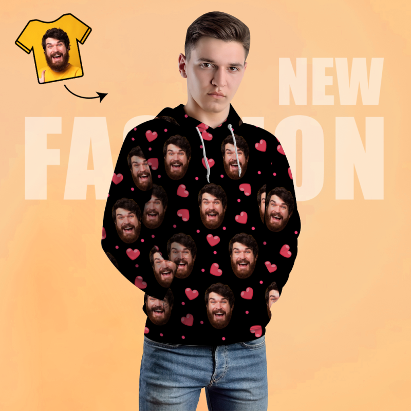 Personnalisé Visage Unisexe Sweat À Capuche Décontracté Imprimé Photo Noir Sweat À Capuche Pour Hommes Femmes - Coeur