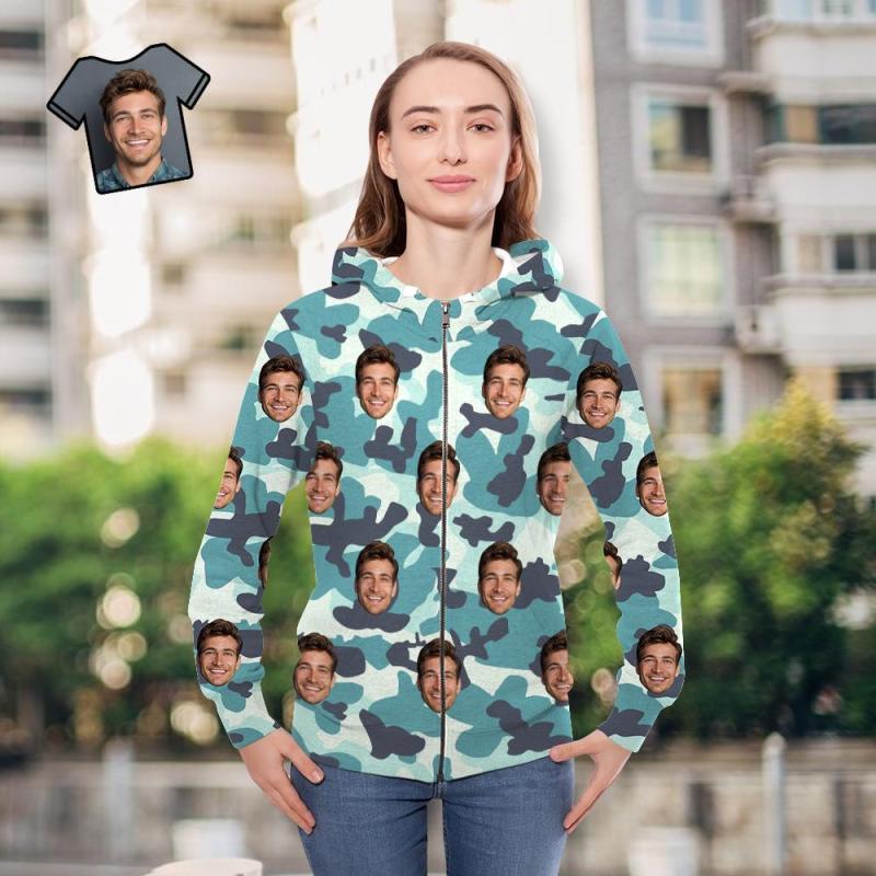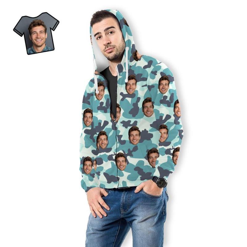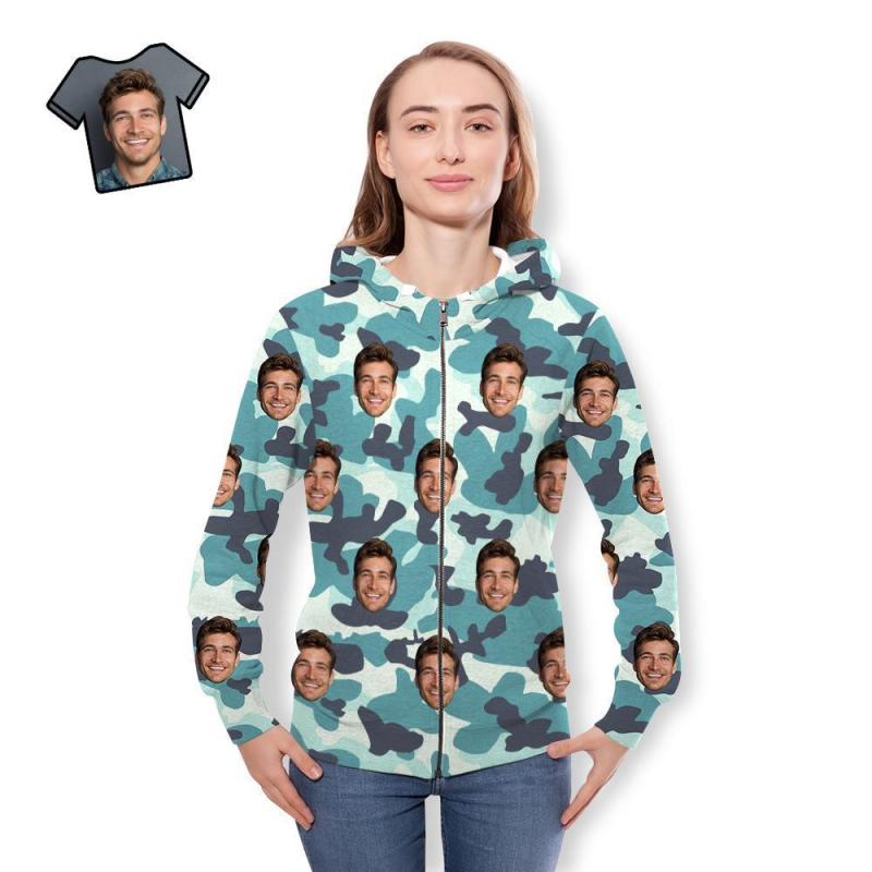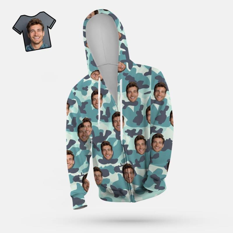 Custom Face Unisex Hoodie Casual Imprimé Turquoise Camouflage