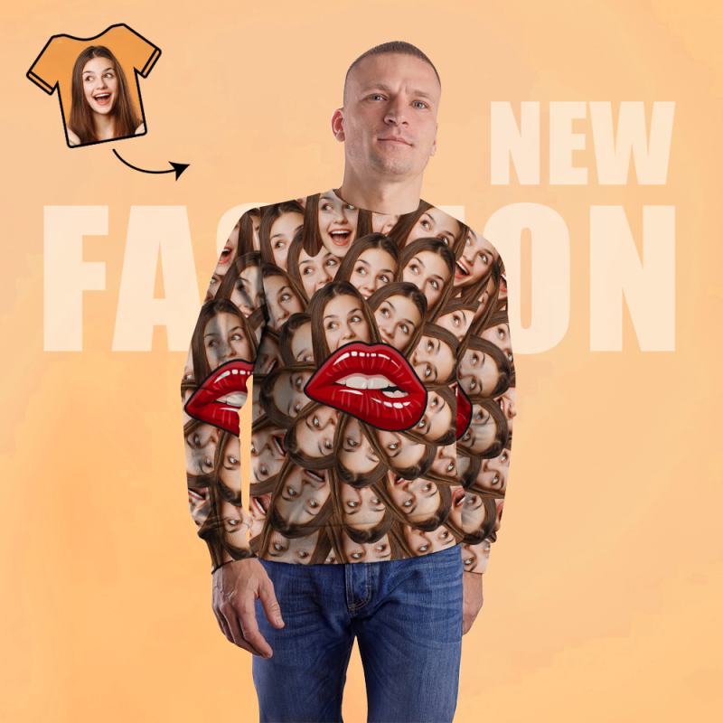 Personnalisé Visage Unisexe Sweat Casual Imprimé Photo Chemise À Manches Longues Pour Hommes Femmes - Lèvres