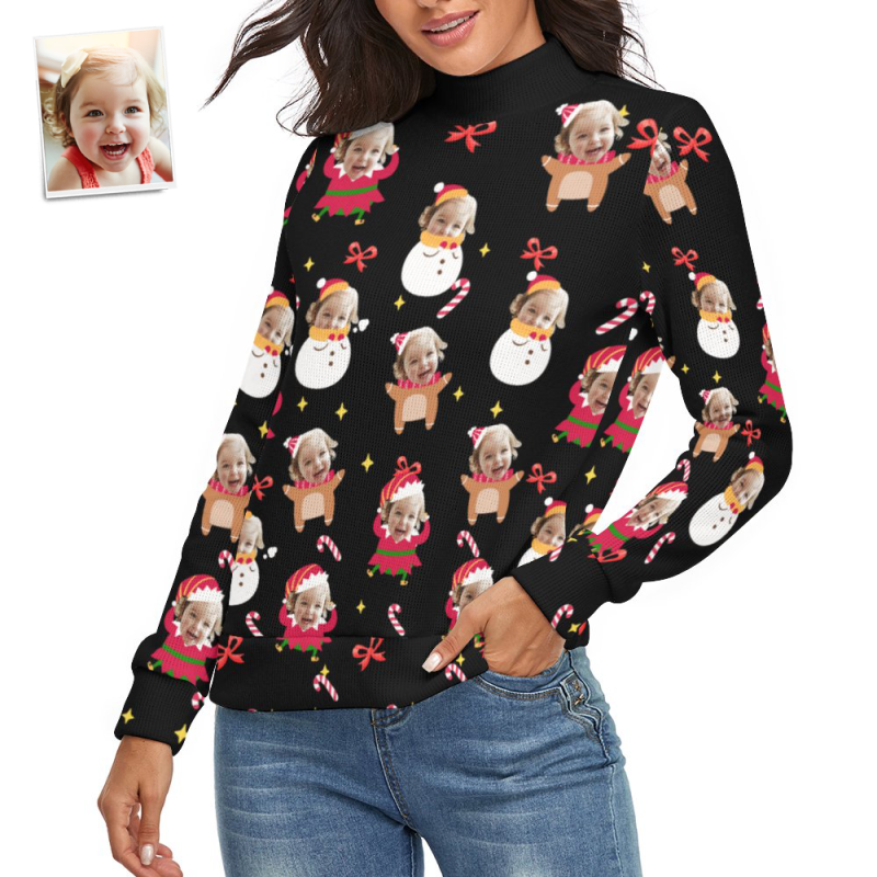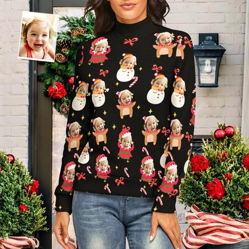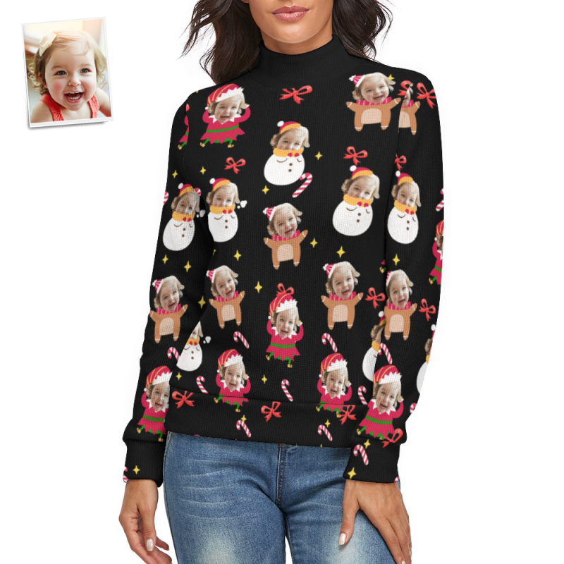 Visage Personnalisé Femmes Chandail De Noël Animé Et Belle Spandex Confortable