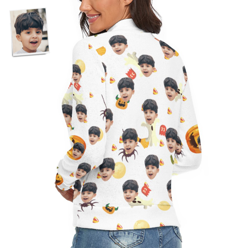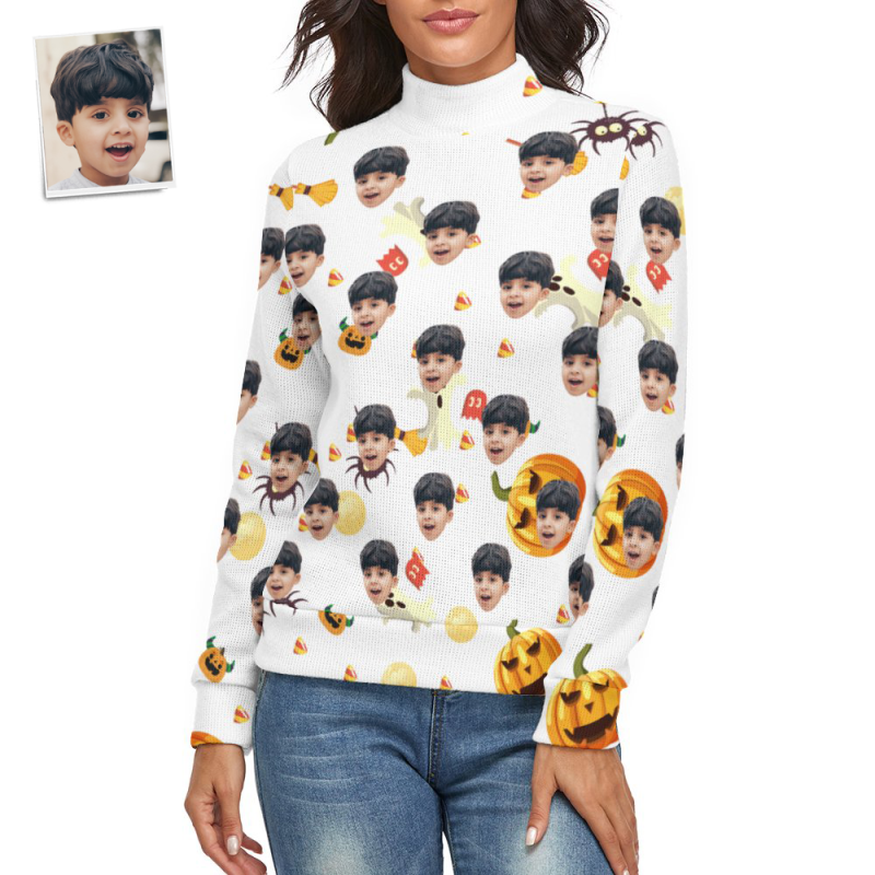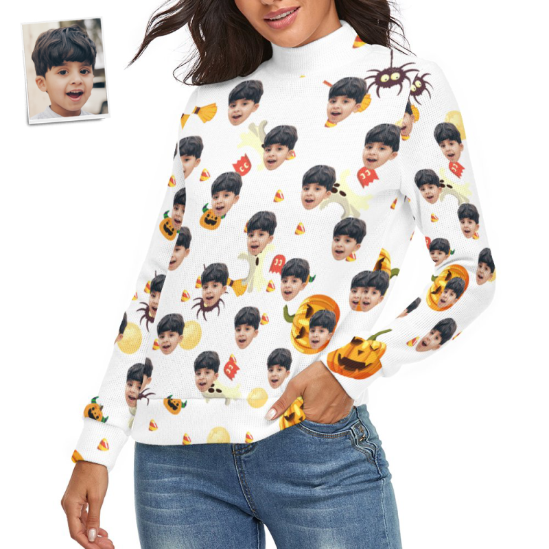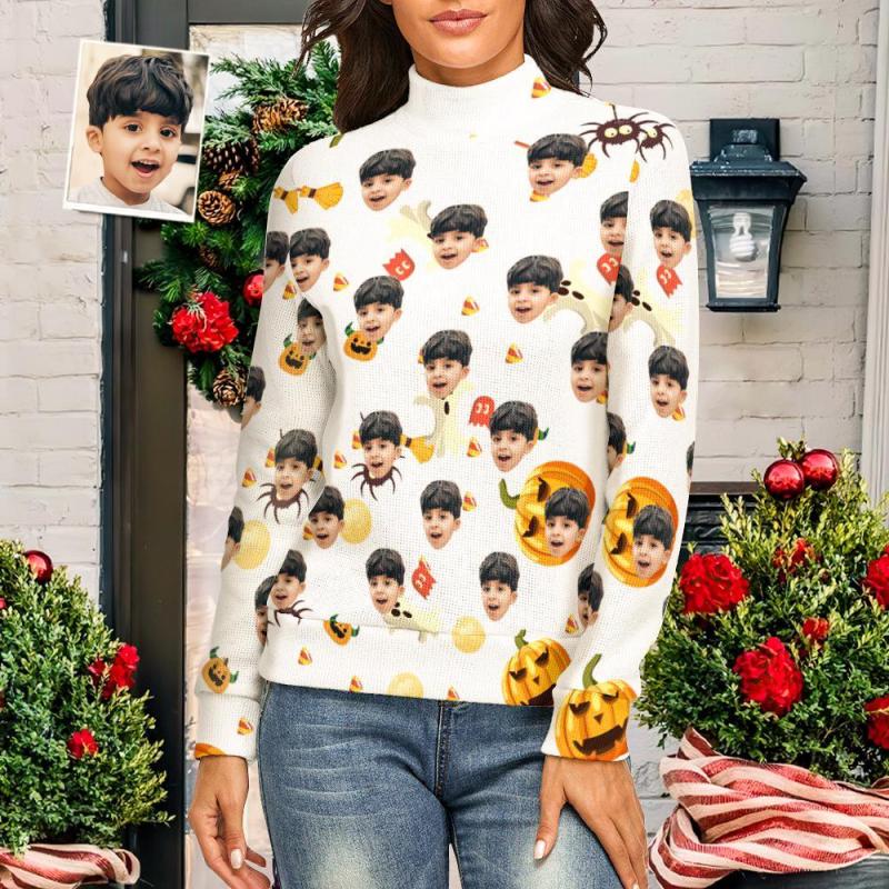 Visage Personnalisé Femmes Halloween Chandail Halloween Citrouille Thème Spandex Confortable