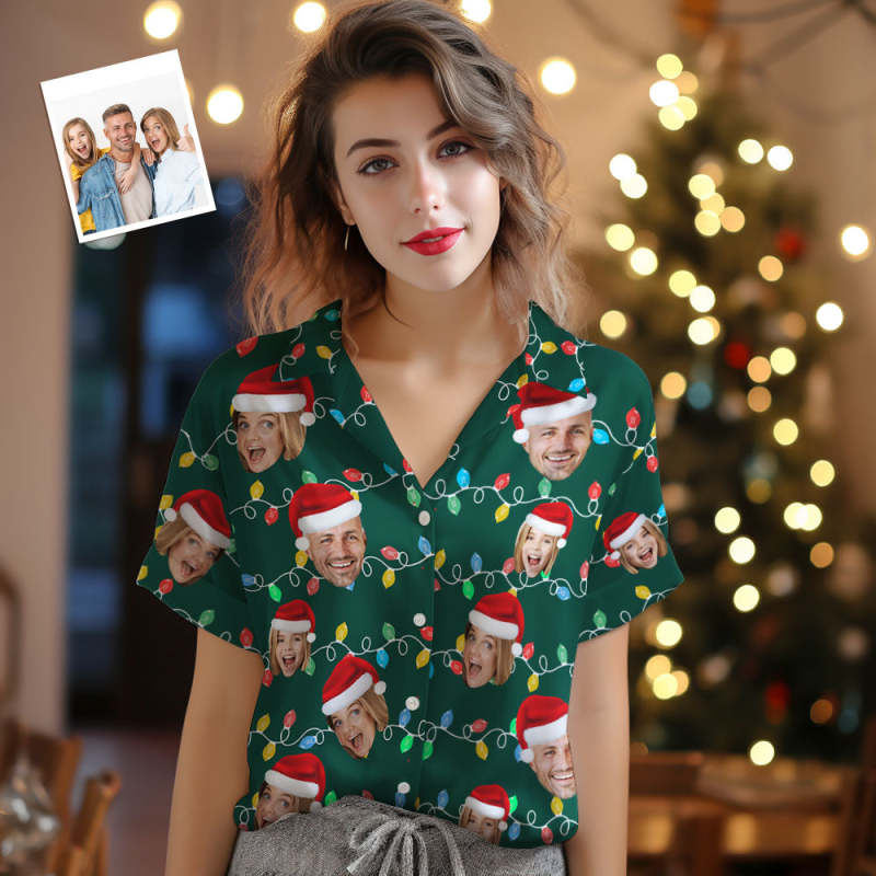 Chemises Hawaïennes Pour Femmes, Visage Personnalisé, Photo Personnalisée, Famille De Noël, Leds, Chemises Aloha