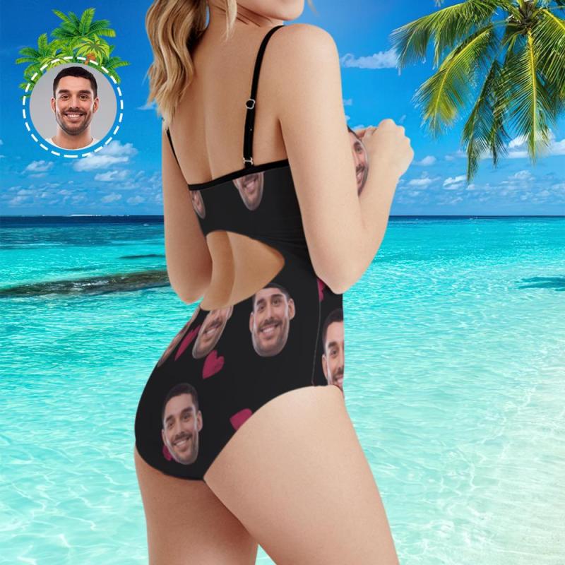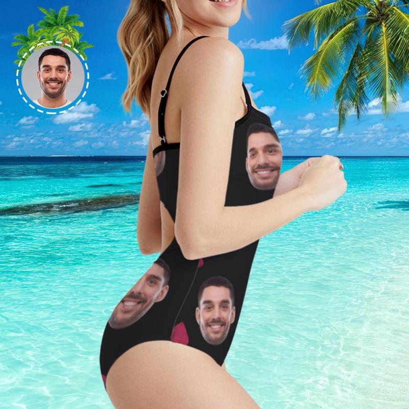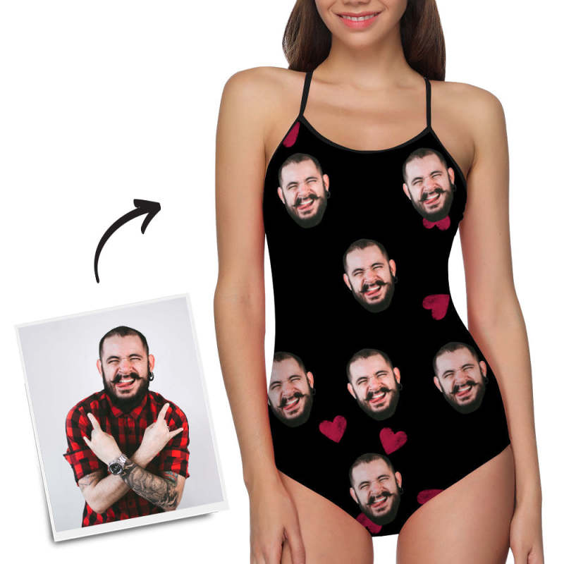 Maillots de bain visage personnalisés aux femmes Photo Caleçon Maillot de bain une pièce Cadeau pour elle – Cœur