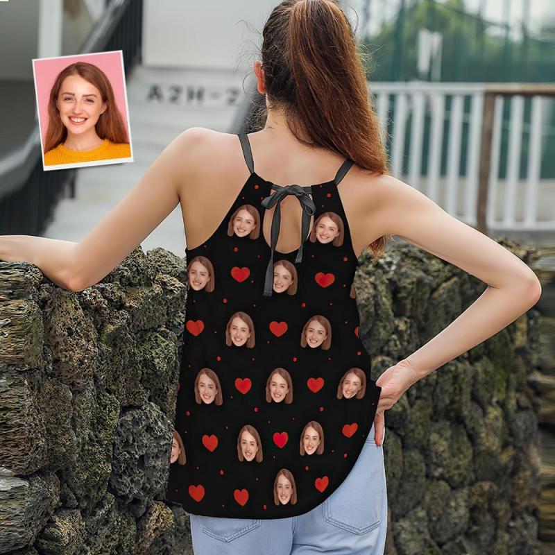 Camisoles À Bretelles Pour Femmes Visage Personnalisé Été Sexy Lâche Mignon Débardeurs - Coeur