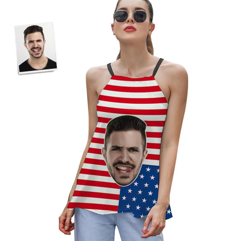 Custom Face Women's Strappy Camisoles Summer Sexy Loose Cute Tanks Tops - Usa Flag