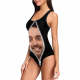 Maillots de bain visage personnalisés aux femmes Photo Caleçon Maillot de bain une pièce Cadeau pour elle - Fermeture éclair