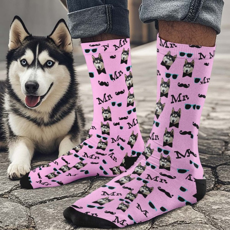Chaussettes Intégrales Personnalisées Mr Cute White Chaussettes Photo Personnalisée Design Personnalisé Meilleure Idée Cadeau