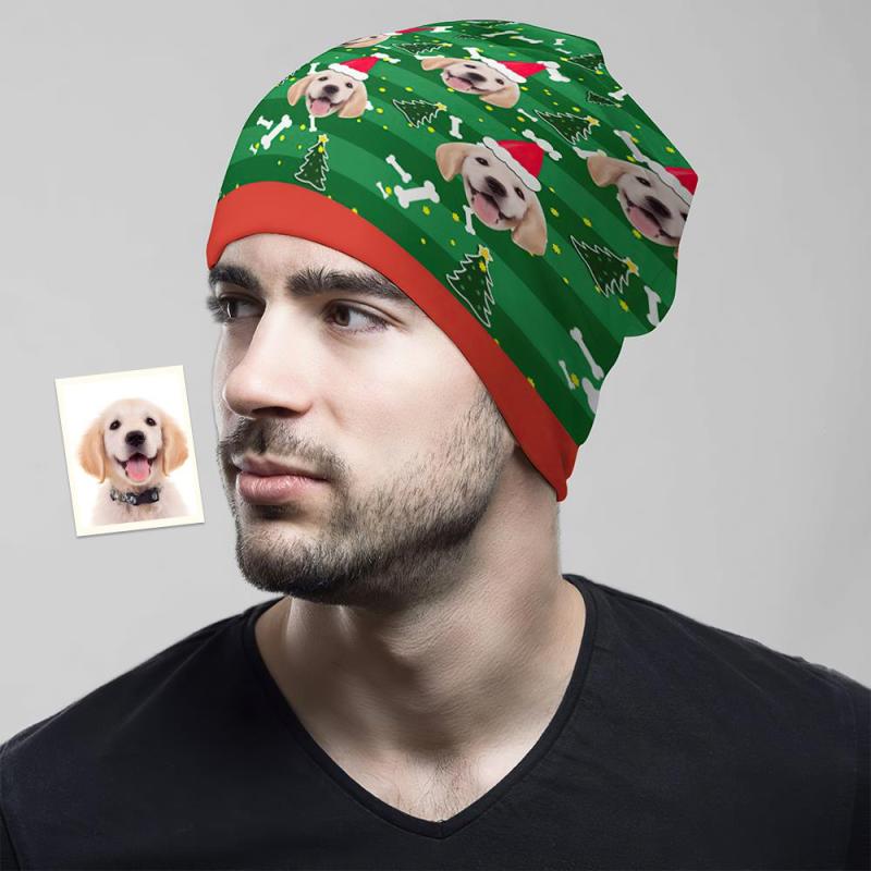 Casquette De Pull À Impression Complète Personnalisée Bonnet Photo Personnalisé Chapeaux Cadeau De Noël Pour Lui - Chien Mignon