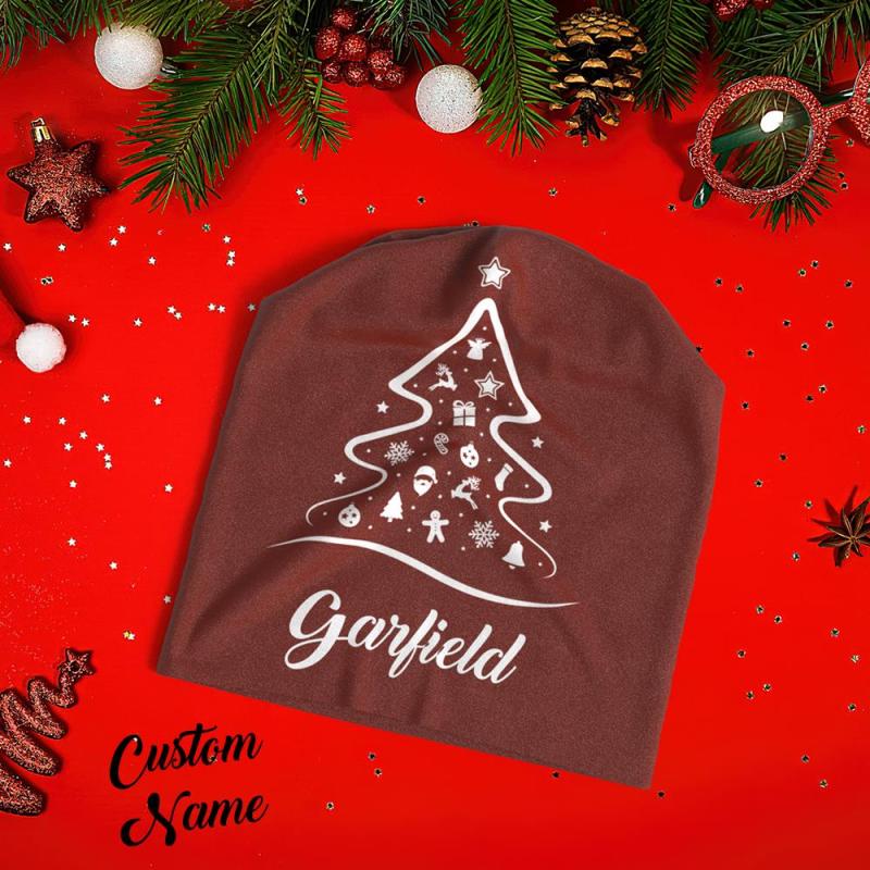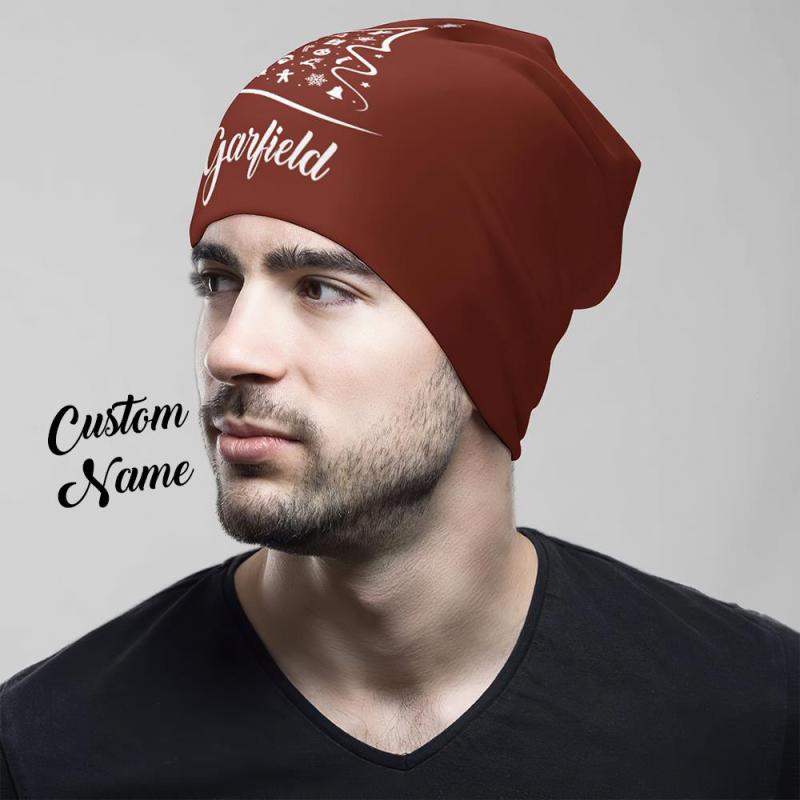 Casquette De Pull À Impression Complète Personnalisée Avec Texte Chapeaux De Bonnet Personnalisés Cadeau De Noël Pour Lui - Sapin De Noël