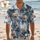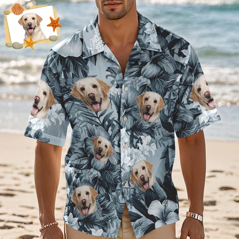 Chemise Hawaïenne Personnalisée Avec Feuilles Bleues, Chemise Hawaïenne Photo Personnalisée, Chemises De Fête De Vacances Amusantes Pour Les Amoureux Des Animaux