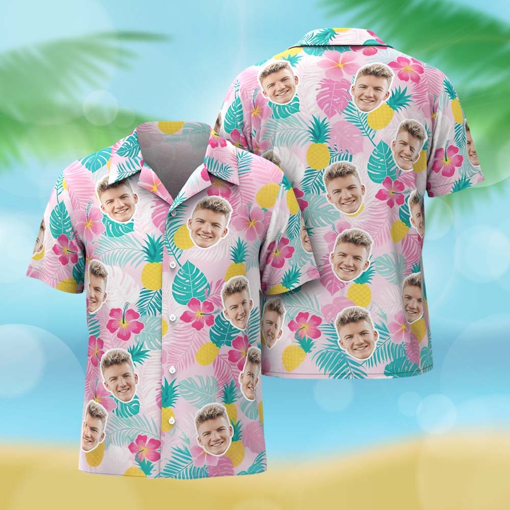Chemise Hawaïenne Personnalisée, Chemise Hawaïenne Rose À Fleurs, Chemise Hawaïenne Photo Personnalisée, Chemises De Fête De Vacances Amusantes