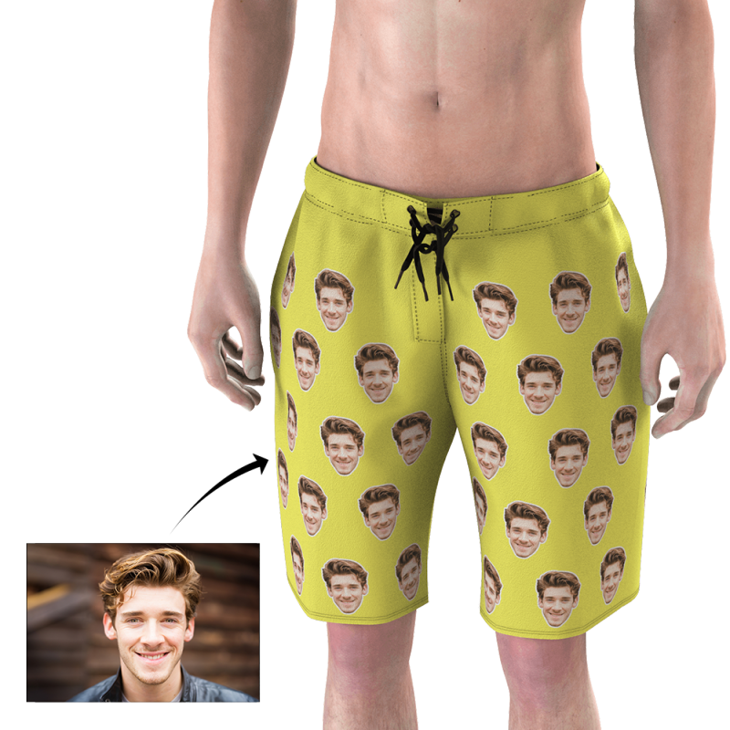 Short de Plage Homme Head Photo Or Jaune Personnalisé