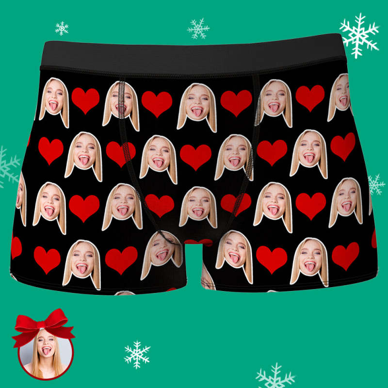 Boxer Visage Personnalisé Sous-Vêtements Visage Homme 3D Aperçu en Ligne Cœur