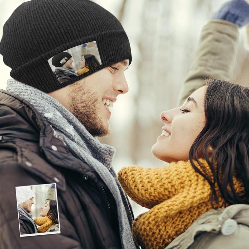 Bonnet En Tricot Personnalisé Photo Beanie Unisexe Personnalisé Chapeaux Cadeau De Noël Pour Amoureux