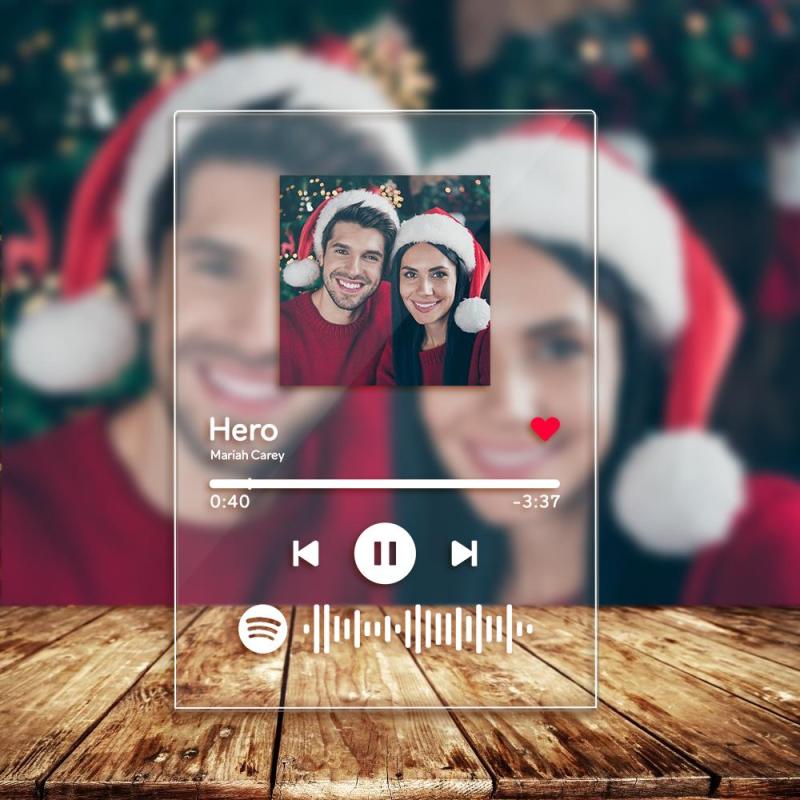 Veuillez télécharger le titre de la chanson, le nom de l'artiste et la couverture de l'album ou la photo que vous souhaitez ajouter à la plaque. Nous y ajoutons un code Music ! Une fois que vous avez scanné le code sur Music , votre chanson commencera à jouer immédiatement.