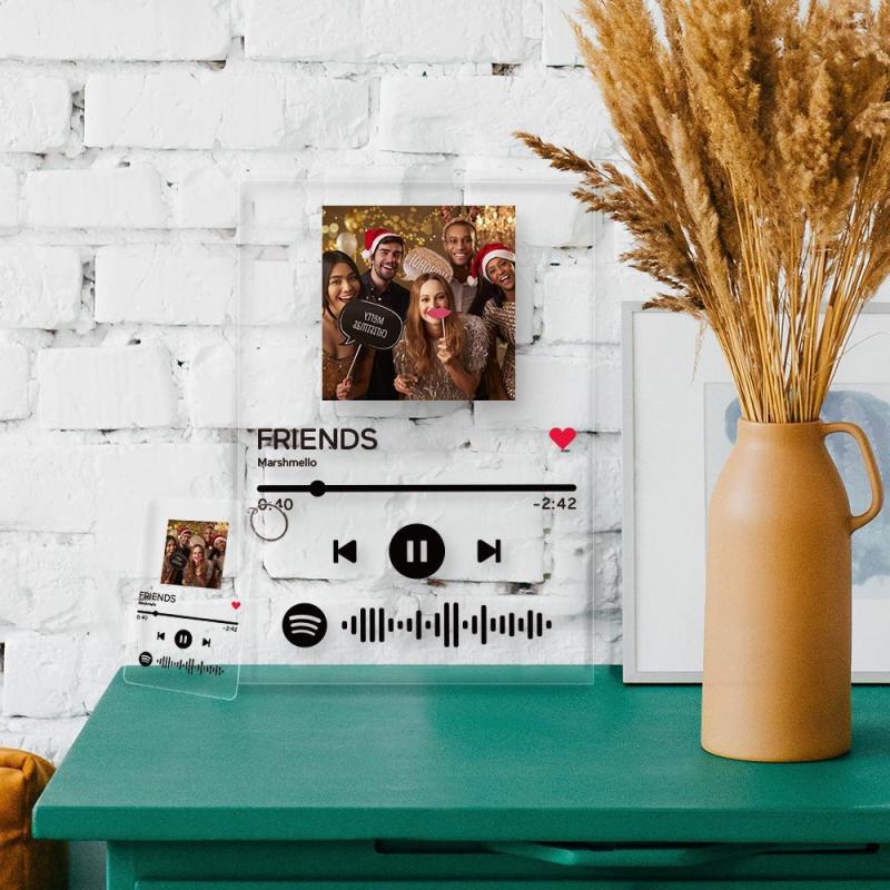 Plaque de Photo en Verre Code Music Personnalisée et Porte-clés Cadeau Besties