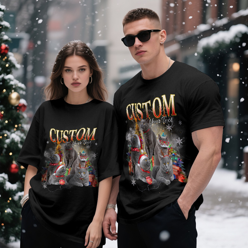 T-shirt Personnalisé Pour Propriétaire D'animal De Compagnie - Photo De Chat Mignon - Cadeau De Noël Idéal Pour Les Amoureux Des Animaux
