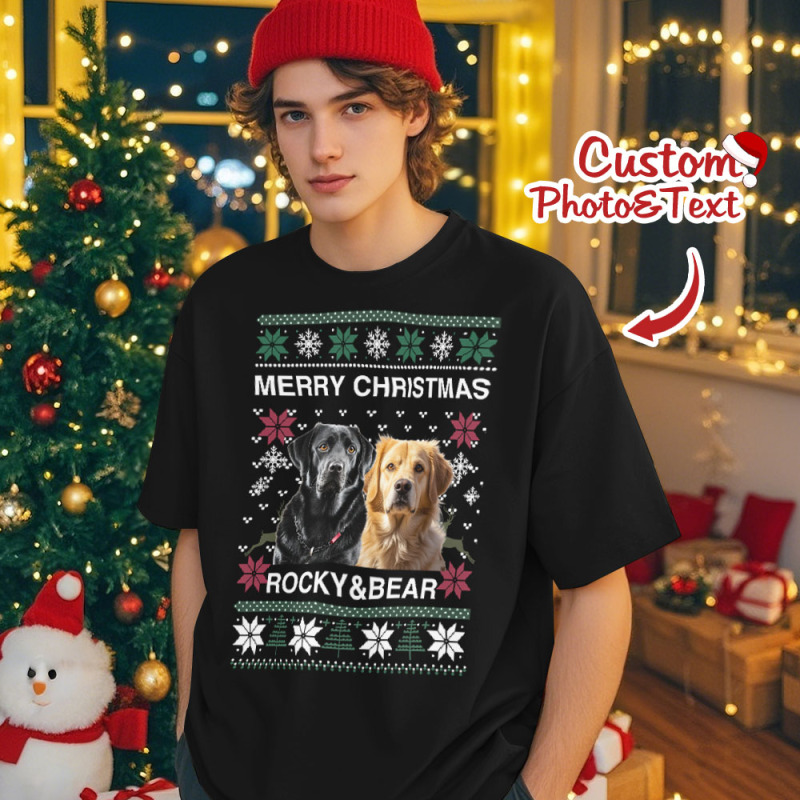 Photo Personnalisée Chemise De Chien De Noël Amoureux Des Chiens T-shirt Photo De Noël Personnalisé