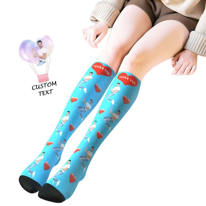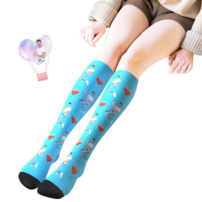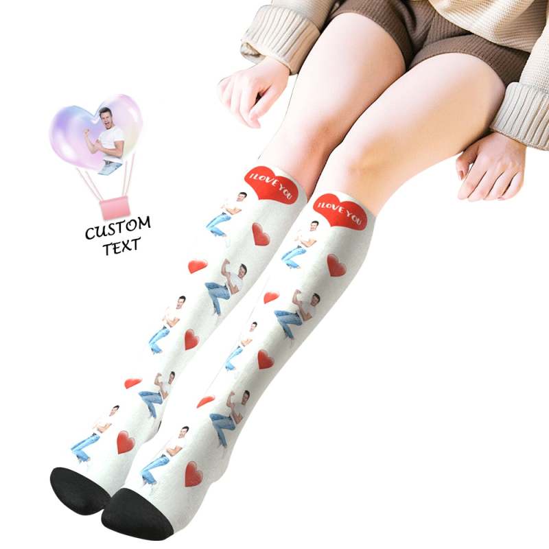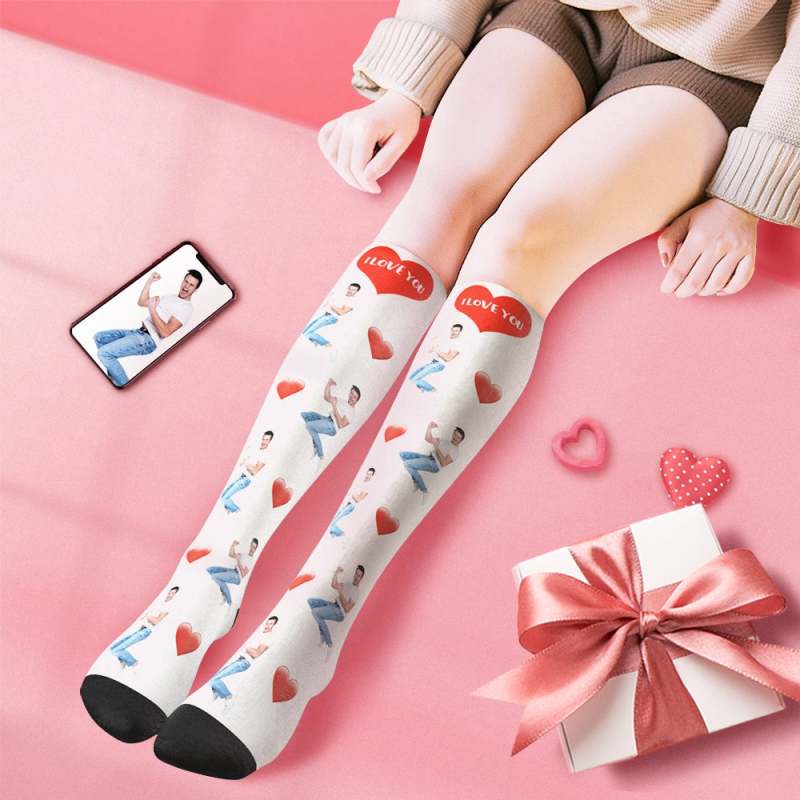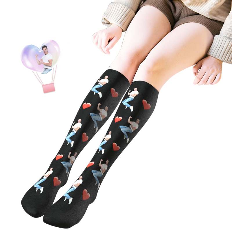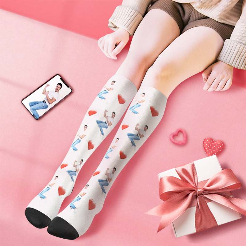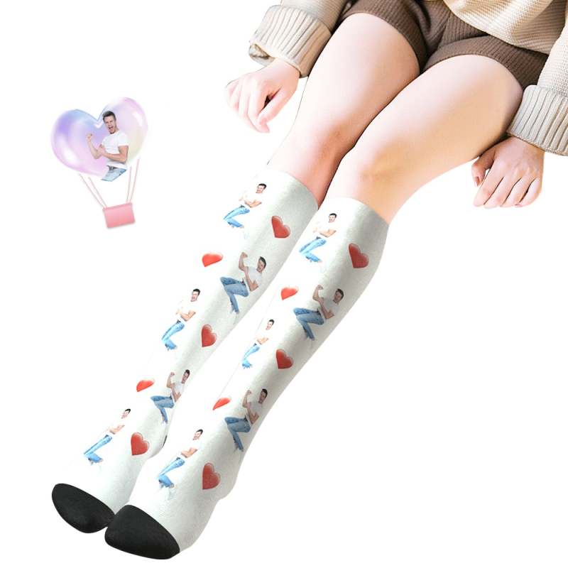 Chaussettes Hautes Photo Personnalisées Avec Coeur D'amour Cadeau Saint Valentin