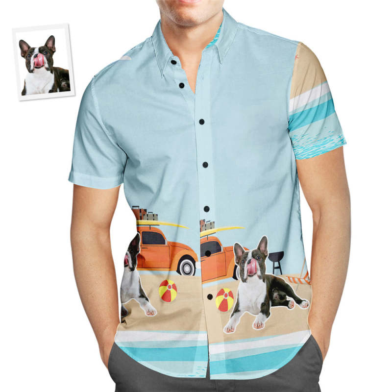 Photo Personnalisée Chemise Hawaïenne Pour Animaux De Compagnie Plage Vacances Hommes Populaire Partout Impression Chemise De Plage Hawaïenne Cadeau De Vacances