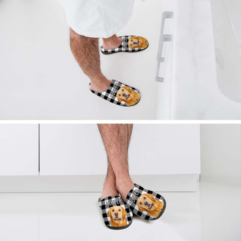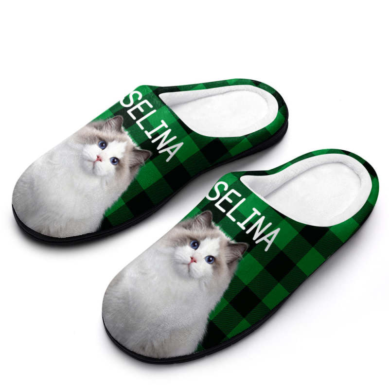 Pantoufles En Coton Avec Photo Personnalisée Pour Femmes Et Hommes, Pantoufles De Maison Décontractées, Cadeau De Noël, Chat Pour Animaux De Compagnie, Bleu