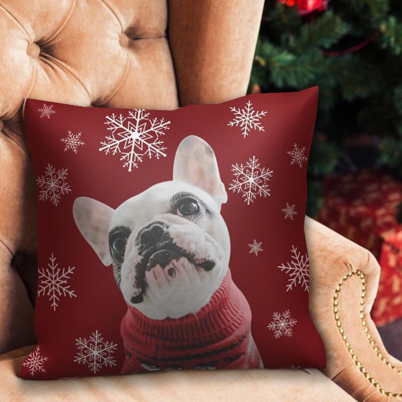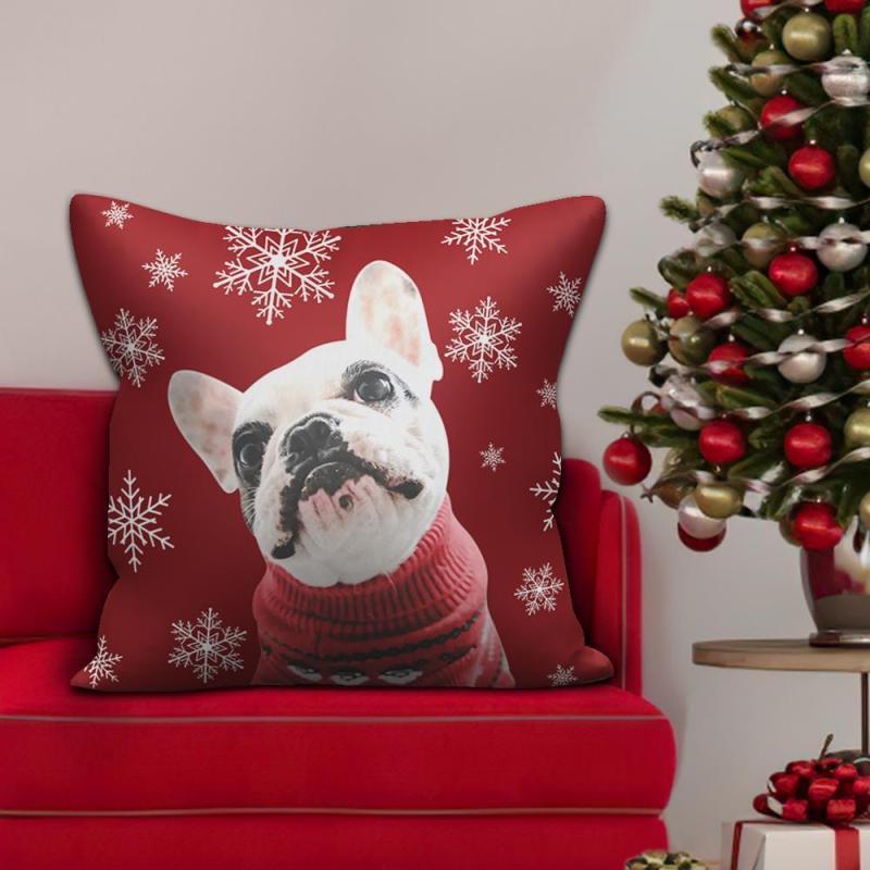 Oreiller Rouge Photo Personnalisé Cadeaux de Noël