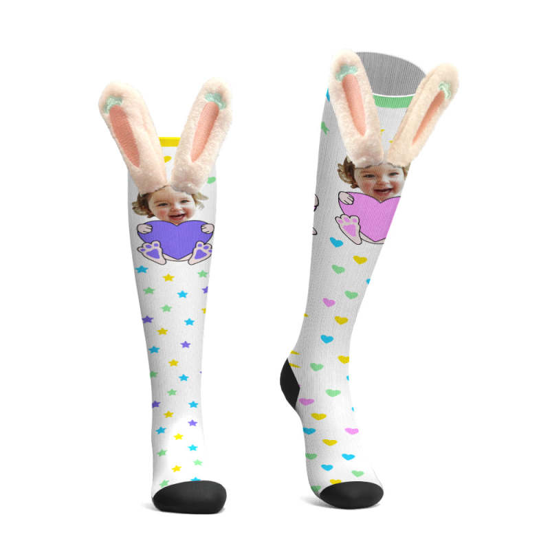Chaussettes Personnalisées Chaussettes Hautes Pour Visage Chaussettes Oreilles De Lapin En Peluche 3d - VisageChaussettes Chaussettes Personnalisées Chaussettes Hautes Pour Visage Chaussettes Oreilles De Lapin En Peluche 3d - VisageChaussettes