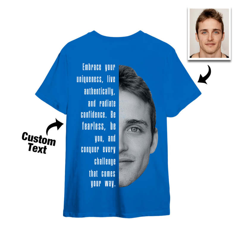 • Caractéristiques : la chemise présente un mélange personnalisable de texte et d'un visage, ce qui en fait un cadeau vraiment spécial et significatif. Adoptez l'individualité et le style avec cette chemise tendance personnalisée qui va au-delà de l'ordinaire. Parfait pour exprimer votre amour, votre amitié ou votre appréciation. Surprenez l'être aimé avec un cadeau avant-gardiste et unique qu'il chérira.