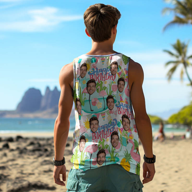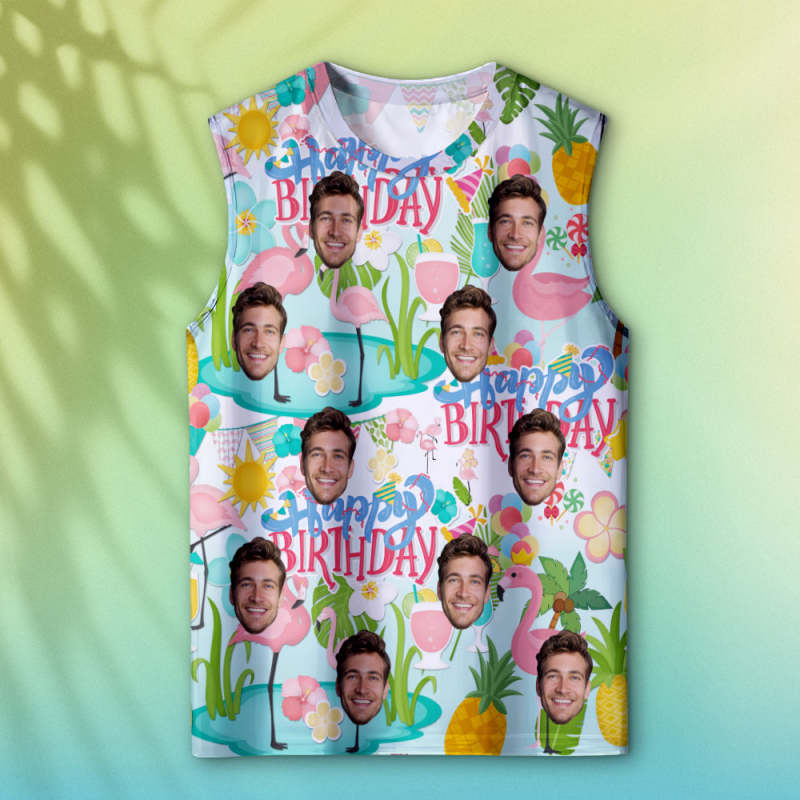 Débardeurs Visage Épais Personnalisés Chemise Sans Manches Homme Joyeux Anniversaire