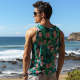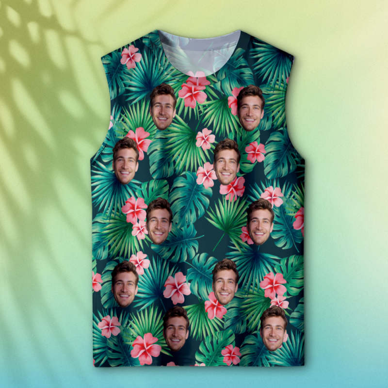 Débardeurs Visage Épais Personnalisés Chemise Sans Manches Homme Fleurs Rouges