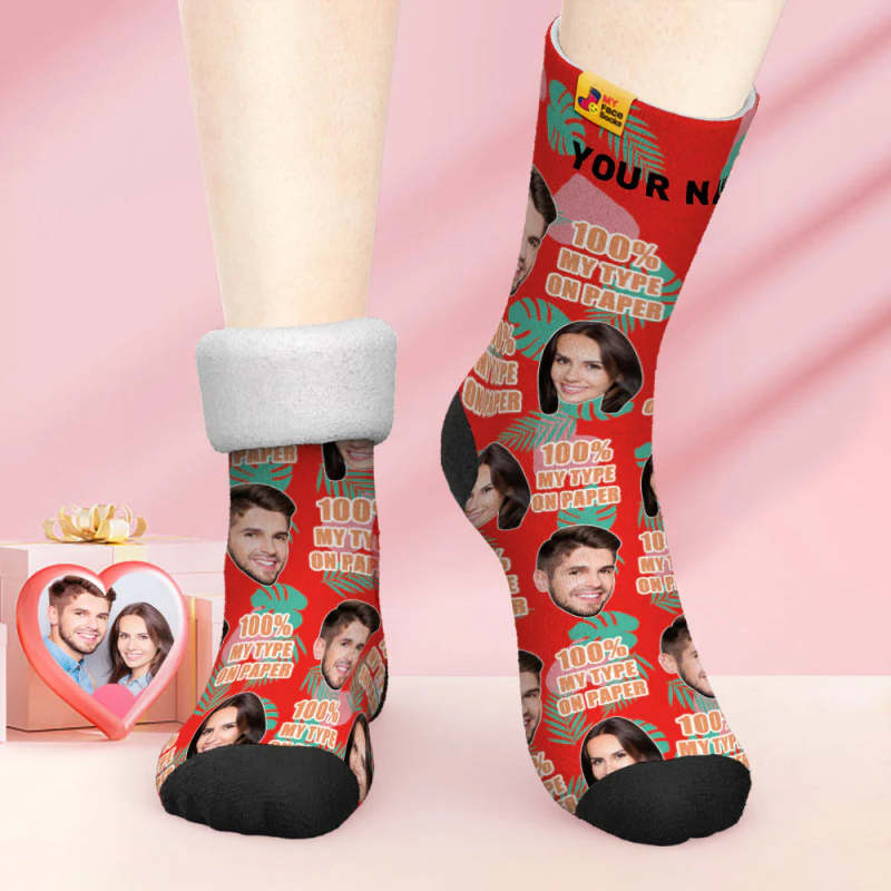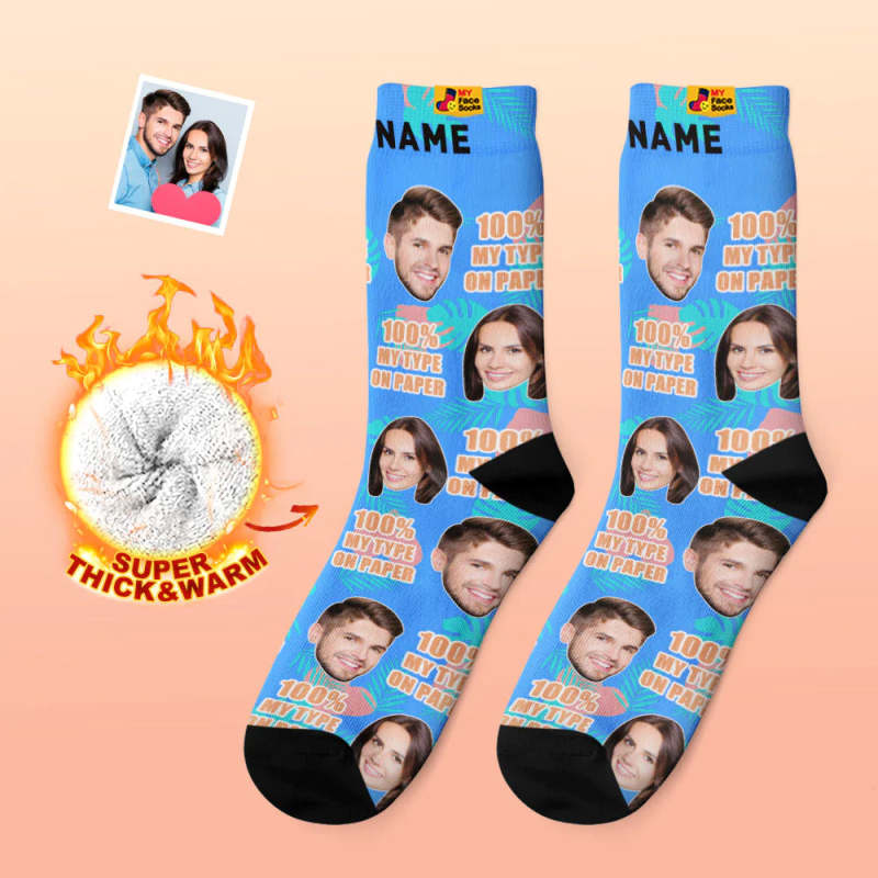 Chaussettes Photo Épaisses Personnalisées Cadeau Saint Valentin Chaussettes Chaudes 100 Mon Type Sur Papier Chaussettes Visage