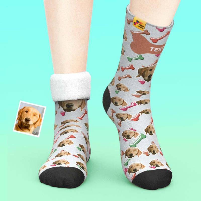 Chaussettes Épaisses Personnalisées Photo Chaussettes Imprimées Numériques 3d Automne Hiver Chaussettes Chaudes Visage De Chien Sur Les Chaussettes