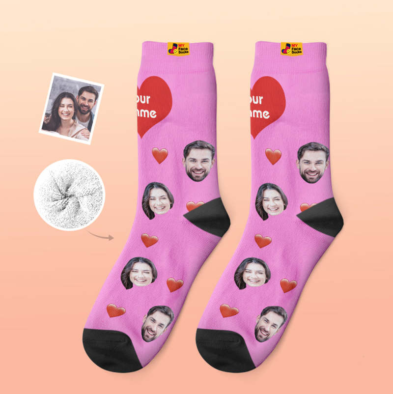 Chaussettes Épaisses Personnalisées Photo Chaussettes Imprimées Numériques 3d Automne Hiver Chaussettes Chaudes Coeur