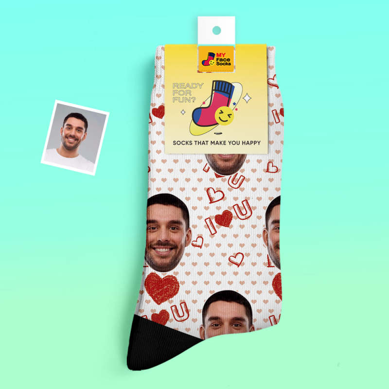 Chaussettes Épaisses Personnalisées Chaussettes Imprimées En 3d Numérique Chaussettes Chaudes D'automne Et D'hiver I Love U Chaussettes