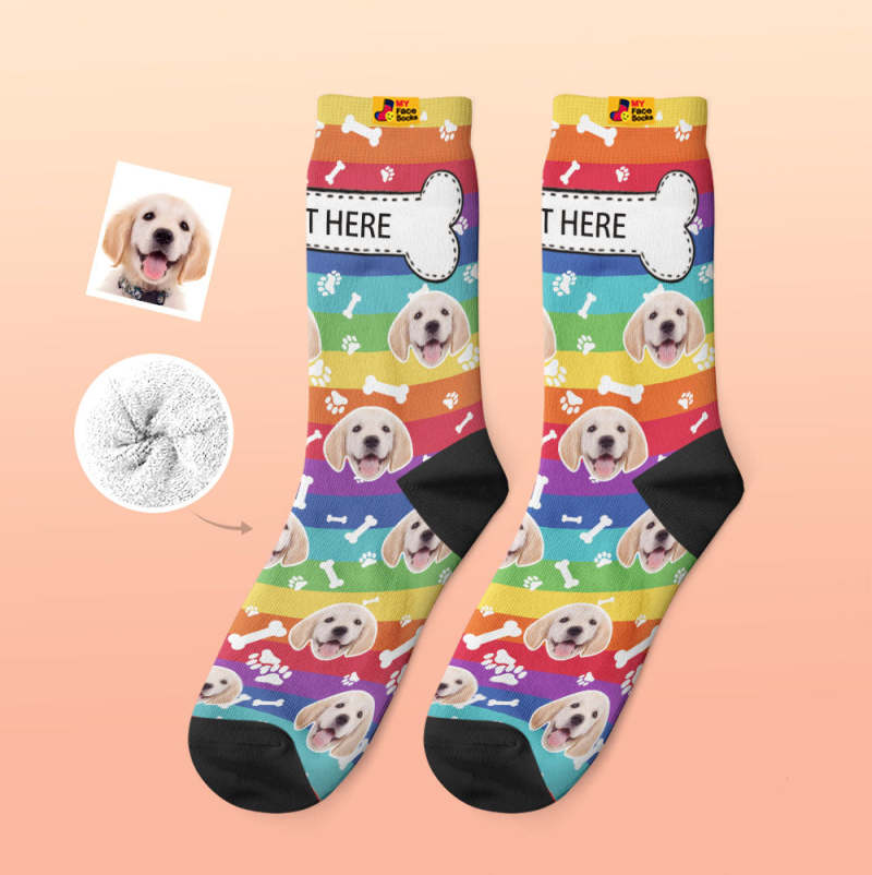 Chaussettes Épaisses Personnalisées Photo Chaussettes Imprimées Numériques 3d Automne Hiver Chaussettes Chaudes Chien Arc-en-ciel