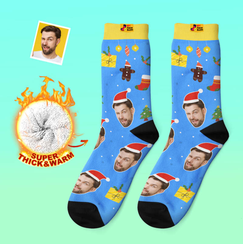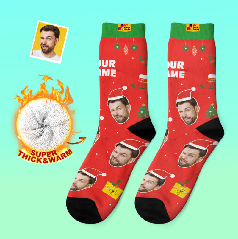 Chaussettes Épaisses Personnalisées Photo 3d Chaussettes Imprimées Numériques Automne Hiver Chaussettes Chaudes Père Noël Chapeaux Cadeau De Noël