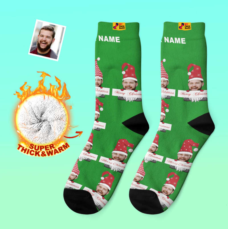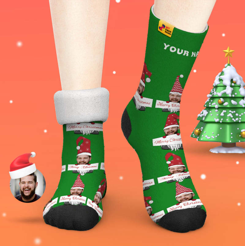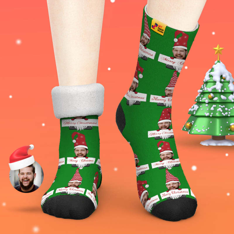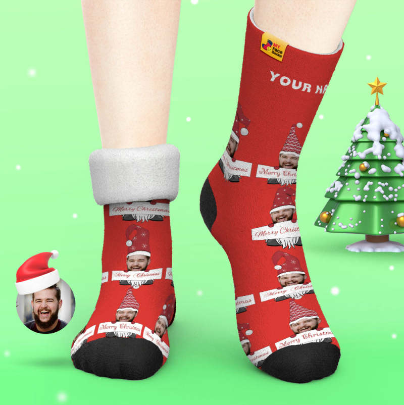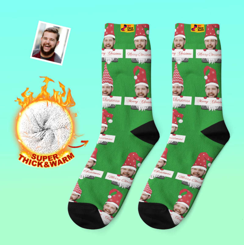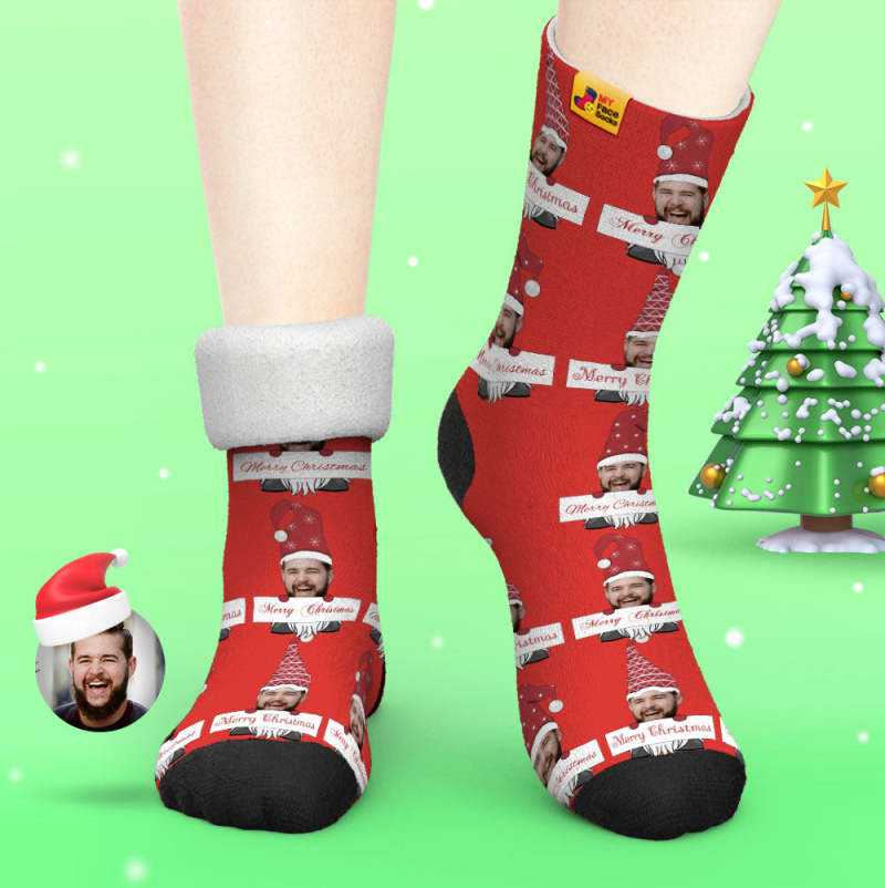 Chaussettes Épaisses Personnalisées Photo Automne Hiver Chaussettes Chaudes Chaussettes De Gnome De Noël Joyeux Noël