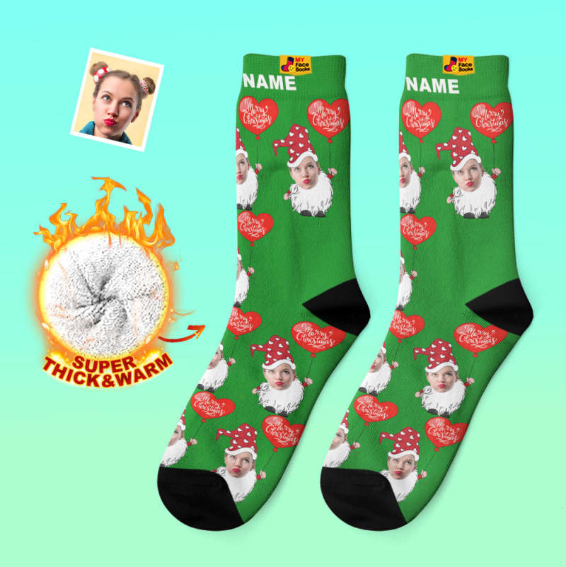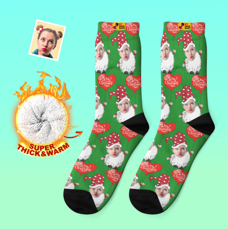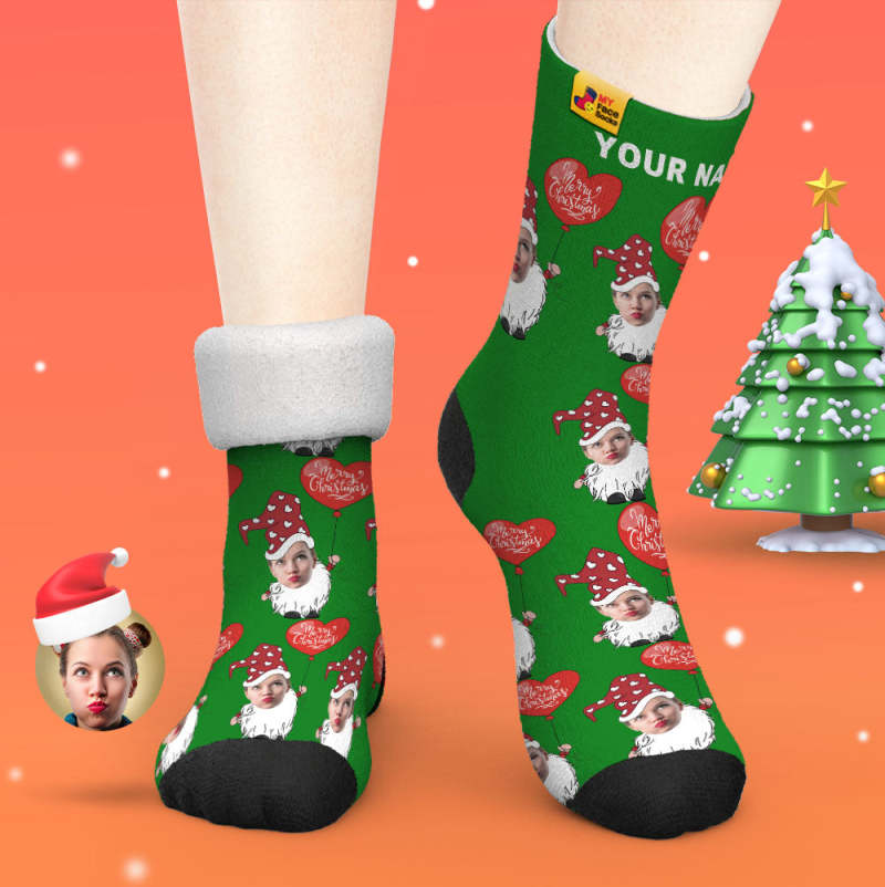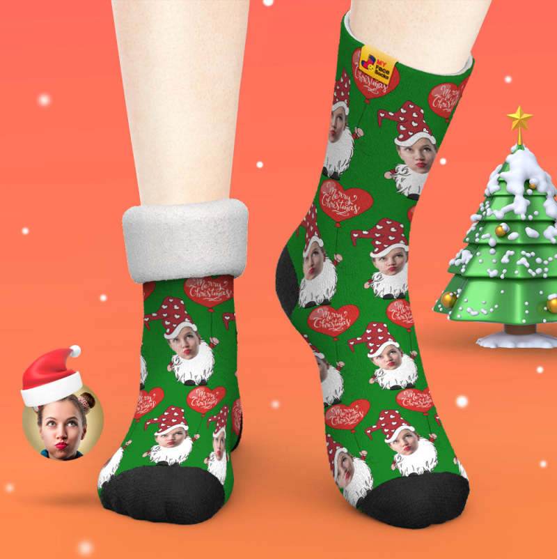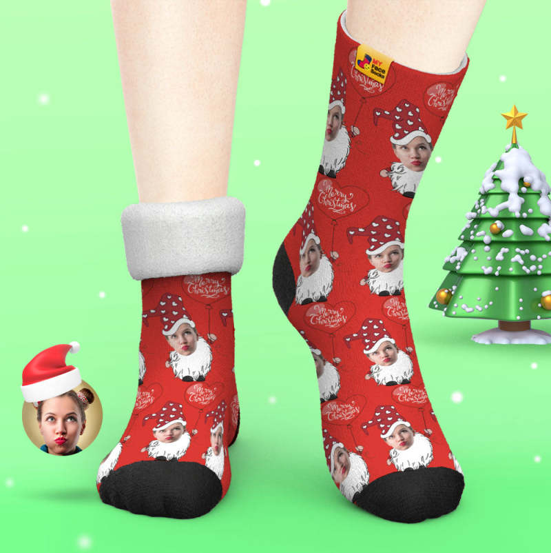 Chaussettes Épaisses Personnalisées Photo Automne Hiver Chaussettes Chaudes Gnome De Noël Avec Ballon En Forme De Coeur Chaussettes De Noël