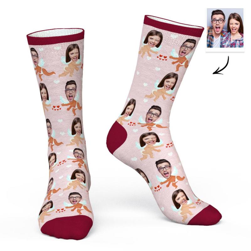 Chaussettes Visage Personnalisées Cupidon Saint-Valentin Chaussettes d'Équipage