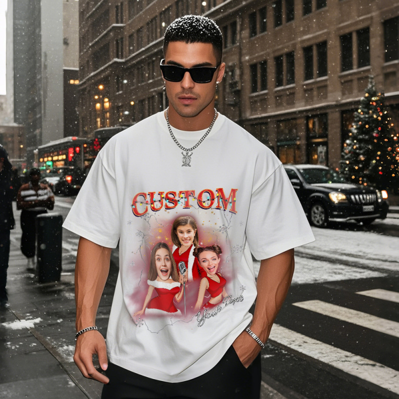 T-shirt De Noël Vintage Personnalisé Avec Photo, Père Noël Lumineux, Cadeau Amusant Pour Les Fêtes, Pour La Famille Et Les Amis