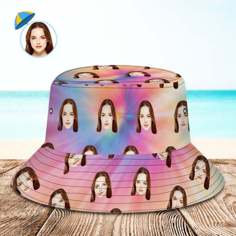 Personnalisez votre photo Visage et animal de compagnie Chapeau de seau d'été Chapeau de pêcheur - colorant de cravate