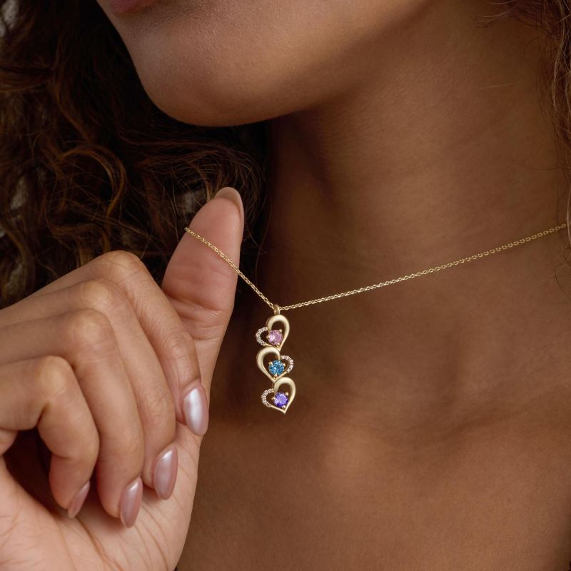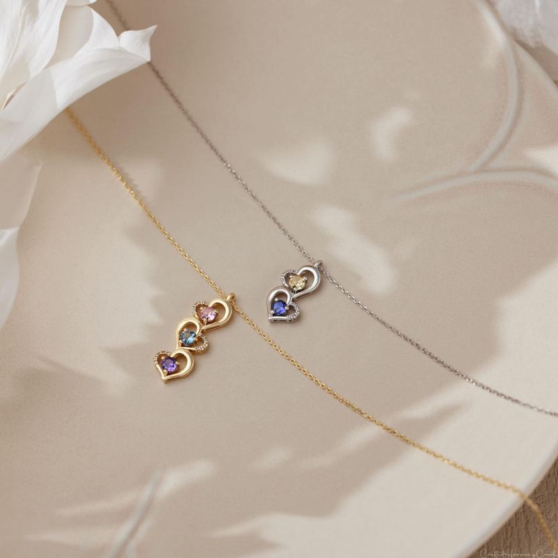 Collier Cœur Personnalisé Avec Pierres De Naissance, Collier Familial Avec Pierres De Naissance, Collier Avec Plusieurs Pierres De Naissance, Collier Pour Maman, Cadeau De Noël Pour Elle