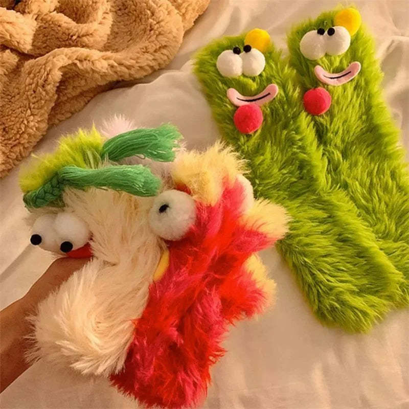 Chaussettes En Peluche Mignonnes Avec De Grands Yeux, Chaussettes Chaudes Épaisses D'hiver