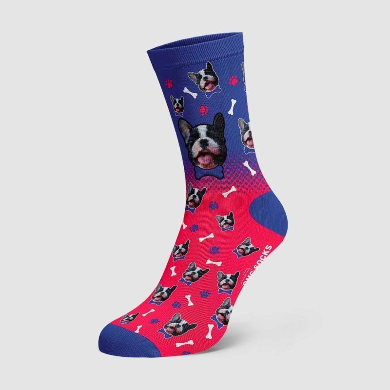 Chaussettes de couleur dégradées pour chien avec visage personnalisé