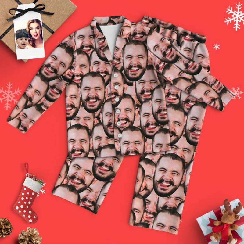 Cadeaux Pour Grand-père Custom Face Mash Pyjamas À Manches Longues Vêtements De Loisirs