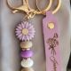 Porte-clés Marguerite Fait Main Avec Perles, Porte-clés Personnalisé Avec Nom, Joli Bijou De Sac, Cadeau De Rentrée Scolaire Ou D'amitié