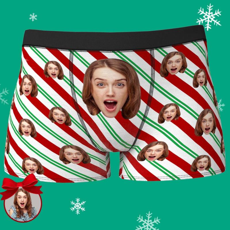 Idées cadeaux de Noël Boxer à visage personnalisé - rayures rouges et vertes
