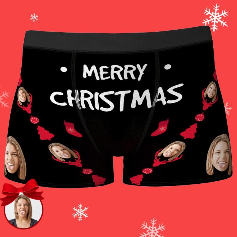 Idées cadeaux de Noël Boxer à visage personnalisé - Chaîne de Noël