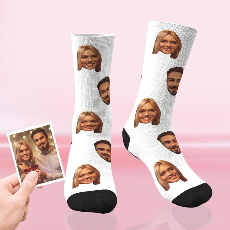 Aperçu en ligne Chaussettes visage personnalisées Chaussettes de visualisation 3D Visages multiples
